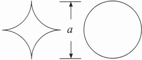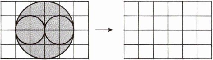 将右图的圆对折两次后沿折痕剪两刀剪成4个相同的$\frac{1}{4}$圆,将4个相同的$\frac{1}{4}$圆的圆弧部分分别与左图的圆弧部分重合,即可拼成一个正方形。(答案不唯一)