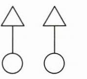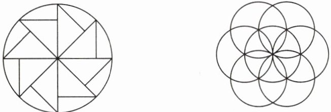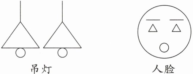 五、用两个三角形、两个圆和两条线段,设计出有意义的图形。例如: