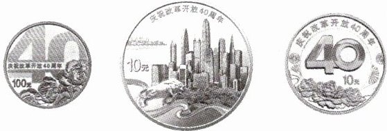 1. 下面是中国银行发行的庆祝改革开放40周年纪念币。