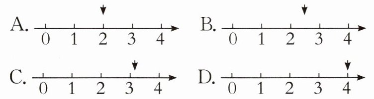 2. 一个直径是1cm的圆,在下面的直线上从“0”开始滚动一周后,圆的位置大约在(