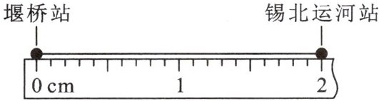 6. 小明想测量无锡地铁的运行速度。他测得地铁从堰桥站出发到达锡北运河站的时间为 $ 2min $,在手机中的“百度地图”上截取了一张地图(如图所示),用刻度尺测得地图上两站间的距离为____