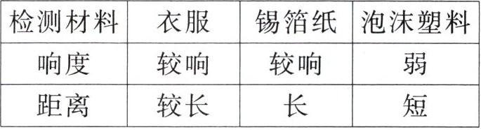 (1)准备的实验器材除了待检测的材料外,还有音叉、机械闹钟、鞋盒。其中适合作为声源的是