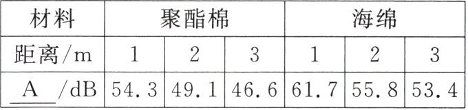 (3)实验得到的结果如表所示,则待检测材料中隔音性能最好的是