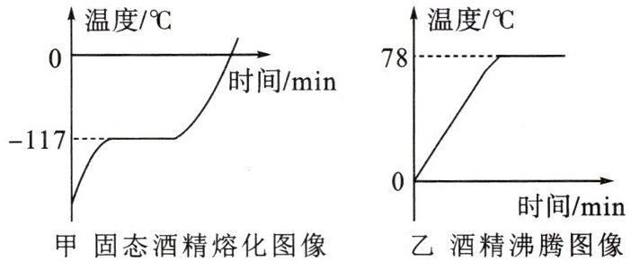 5. 如图所示,甲、乙分别是酒精在标准大气压下熔化和沸腾时温度随时间变化的图像,下列说法正确的是(