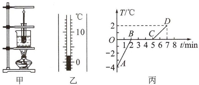 ,便于观察试管中冰的状态变化。(2)观察图乙,温度计的示数为