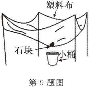 9. (河南省中考)在干旱缺水的地区,可用塑料布收集露水,如图所示。露水形成时发生的物态变化是