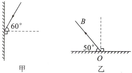 7. (1) 根据给出的入射光线,在图甲中画出反射光线,并标出反射角的度数。