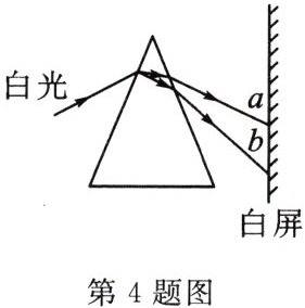 4. 如图,一束太阳光斜射到三棱镜上,经三棱镜折射后,在白屏上形成一条彩色的光带,这是光的