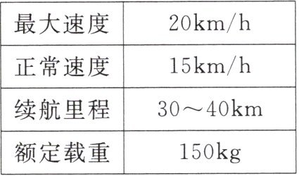 (1)解:续航最大里程$:s_{大}=40km,$共享电单车的正常速度:v=15km/h,若以正常速度行驶,最多可用的时间$:t=\frac{s_{大}}{v}=\frac{40km}{15km/h}=\frac{8}{3}h=160min。$