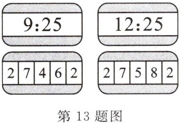 13. 如图所示是某汽车启动和到达的时间以及对应的里程表(盘面指示为千米数)的示数。由图可知,此过程汽车行驶的里程为