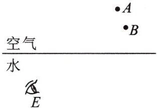 (选填“A”或“B”)点是像所在的位置,在图中画出水下E处的潜水员看到路灯的光路图。解:如图所示