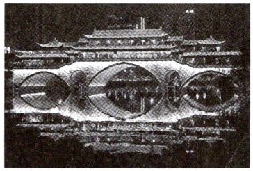 8. (成都市中考)夜幕降临,横跨成都锦江两岸的安顺廊桥灯火璀璨,桨声灯影里,夜色让人陶然而醉……正所谓“锦江灯月遥相近,烟火市井三千年”。如图,水中“灯影”是由于光的