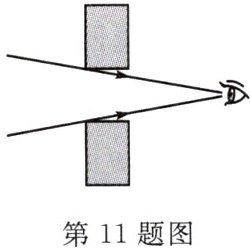 11. 在一个不透明的木板上,钻一个小孔,用眼睛通过小孔可以观察到一定的范围,如图所示,为了扩大观察范围,在小孔中最好嵌入