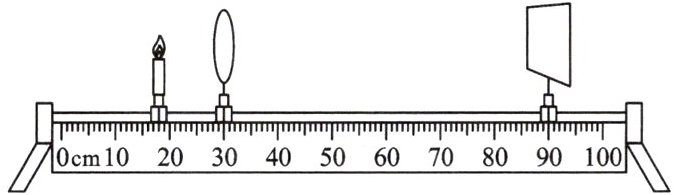 (1)将蜡烛和焦距为 10cm 的凸透镜甲固定在如图所示的位置,点燃蜡烛后,位于 90cm 刻度线处的光屏上得到烛焰清晰 (