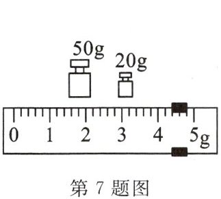 7. (哈尔滨市中考)小明用天平“测量石块的质量”。他将天平放在水平桌面上,移动游码至标尺左端的零刻度线处,若此时指针偏向分度盘中线的左侧,应将平衡螺母向