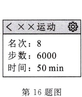 16. 小明某天早上把手机放在口袋中出去散步,如图是散步后手机某 App 记录的数据。如果小明此次步行的平均步长是 0.5m,那么他本次步行的平均速度是