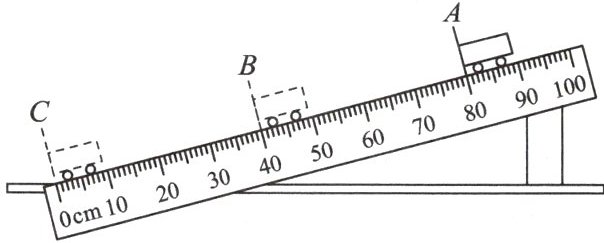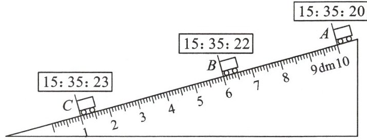 4. 在如图所示的斜面上测量小车运动的平均速度,让小车从斜面的 $ A $ 点由静止开始下滑,分别测出小车到达 $ B $ 点和 $ C $ 点的时间,即可测出不同阶段的平均速度。对上述实验的数据处理正确的是(