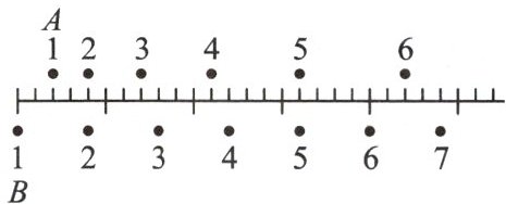 3. 如图所示,为两个小球运动时的频闪照片,闪光间隔为 $ 1s $,图上数字为闪光时刻编号,图中每一个小格的长度为 $ 0.1m $。下列有关小球 $ A $、$ B $ 的说法正确的是(