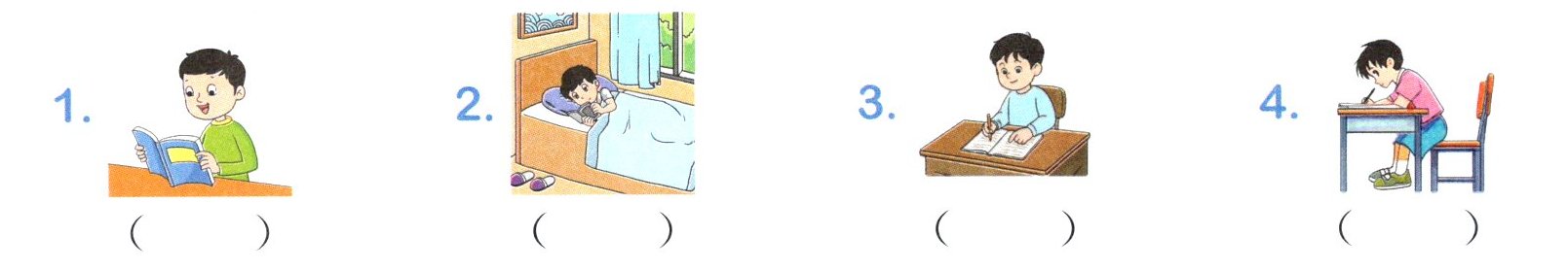 五、请认真观察,语文课上的小朋友们都在做什么?选一选。(填序号)