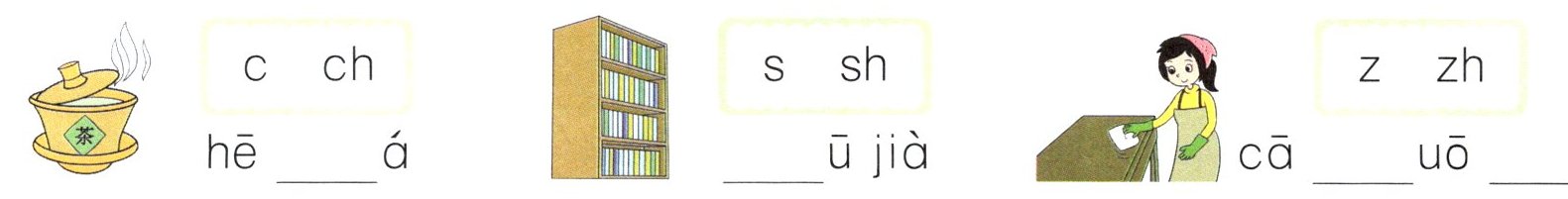 三、请你根据图画内容,选择正确的声母,将音节补充完整。