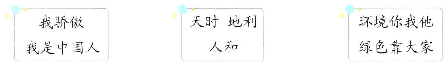 第一个框:我 我 人 第二个框:天 地 人 第三个框:你 我 他