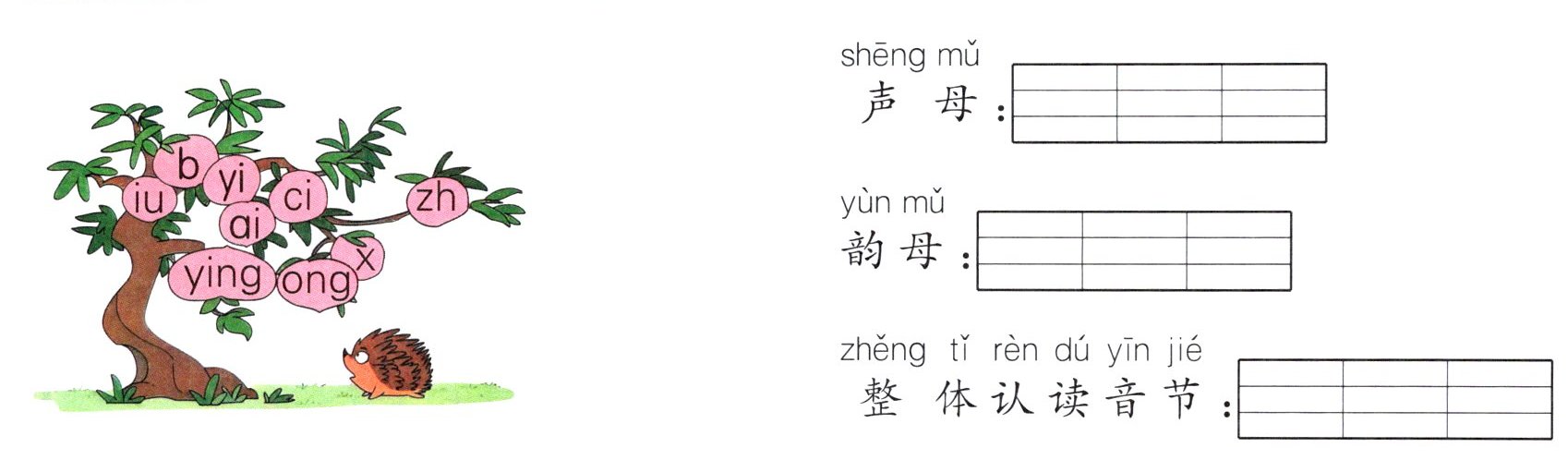 声母:b x zh 韵母:ai ong iu 整体认读音节:yi ying ci