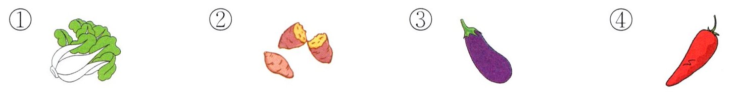 2. ③ 解析:从儿歌中“白菜对红椒。黄豆芽,绿蒜苗,红薯长青藤”可知,没有提到茄子。故选③。