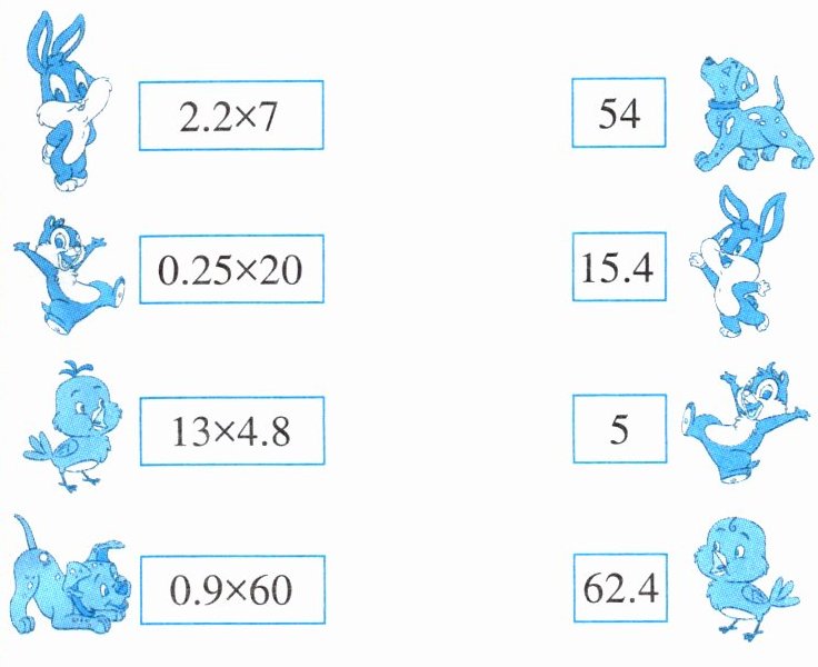 $2.2×7$与$15.4$相连;$0.25×20$与$5$相连;$13×4.8$与$62.4$相连;$0.9×60$与$54$相连。