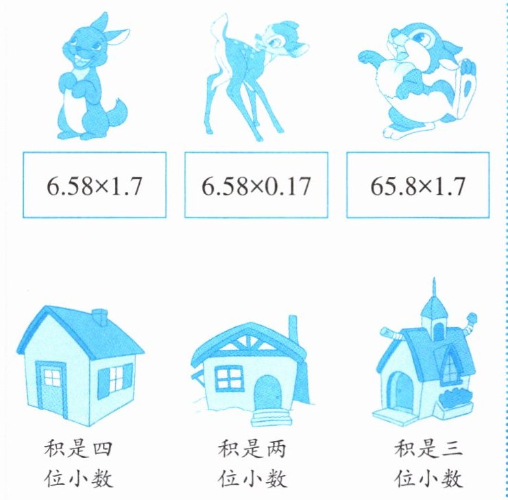 6.58×1.7—积是三位小数;6.58×0.17—积是四位小数;65.8×1.7—积是两位小数