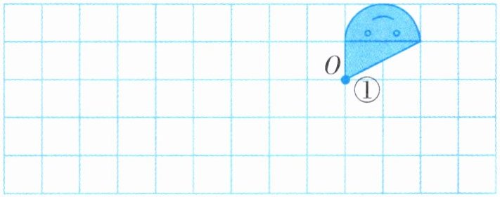 2. 画一画,画出将图形①围绕点O沿逆时针方向旋转90°,再向左平移4格后的图形。