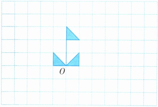 6. 画一画,将下面图形绕点O沿顺时针方向旋转90°,再向左平移4格。