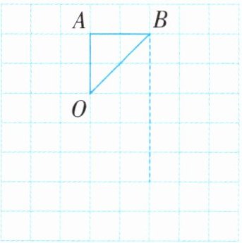 斜线段 $OB$变成向右水平,点 $B$的新位置为直接水平向右远离原点 $O$一格处;