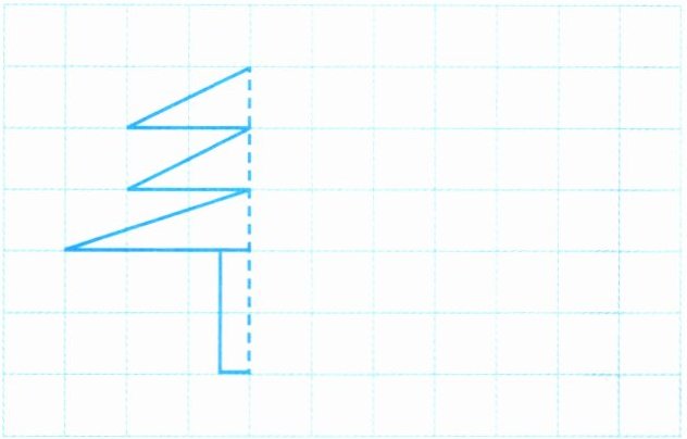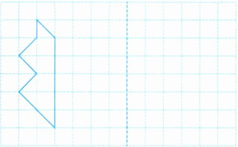 2. 沿对称轴画出它的另一半,使它成为轴对称图形:
