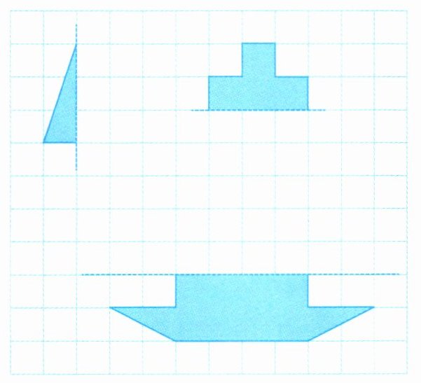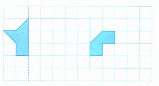 4. 将下面的图形向右平移4格,再画出它的另一半,使它成为轴对称图形。