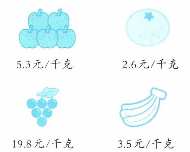 (2)葡萄的单价是橘子的几倍?(得数保留两位小数。)