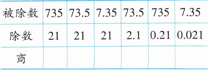 被除数:$735$,$73.5$,$7.35$,$73.5$,$735$,$7.35$。