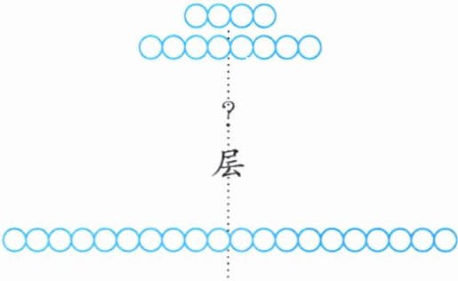 4. 木材加工厂堆放原木(堆放方式如下图所示),每上一层都比原来一层少4根。已知最上层有4根,最下层有20根。