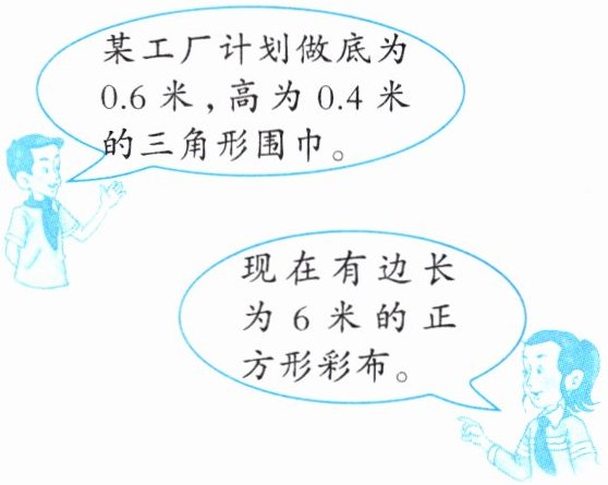 2. 一条三角形围巾面积:0.6×0.4÷2=0.12(平方米)