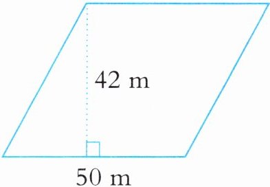 $ 面积 = 50 \, m × 42 \, m = 2100 \, m^2 $。