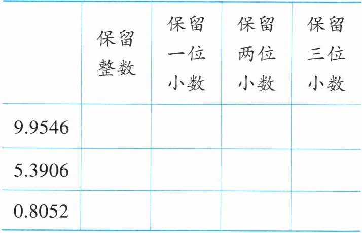 | | 保留整数 | 保留一位小数 | 保留两位小数 | 保留三位小数 |