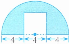 4. 如下图所示,阴影部分是中间缺口为正方形的一个半圆,算出这个图形的周长和面积。($\pi$取3。)