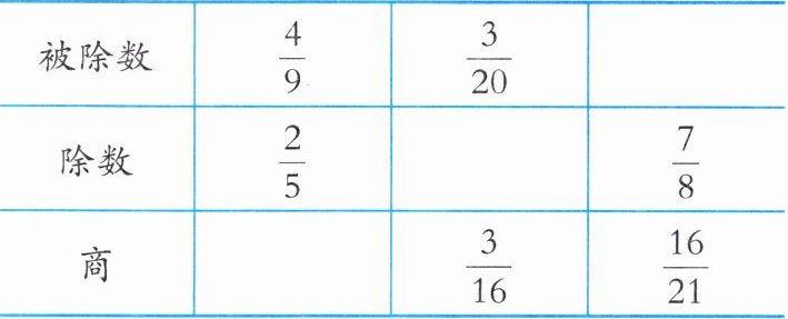 | 被除数 | $ \frac{4}{9} $ | $ \frac{3}{20} $ | $ \frac{2}{3} $ |