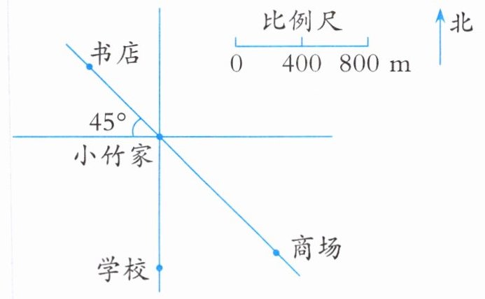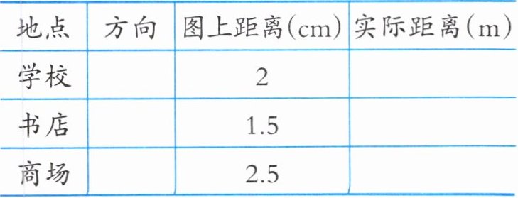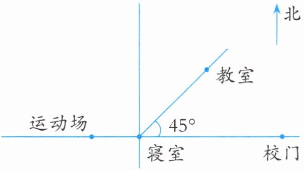 4. 以小宁家为参照点,南方$120m$处有一棵大树,东北方$40m$处有一口水塘,西方$160m$处是学校。在比例尺是$1:4000$的下图中,标出大树、水塘、学校的位置。