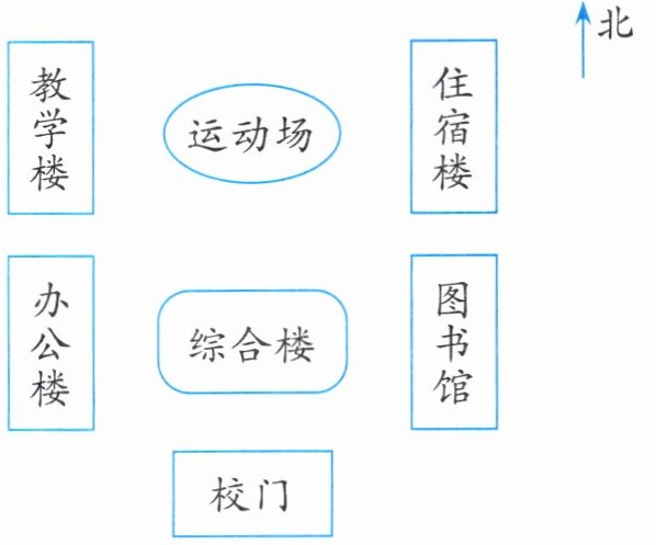 3. 看下图,说一说,张老师从住宿楼到办公楼怎样走?有几种走法?