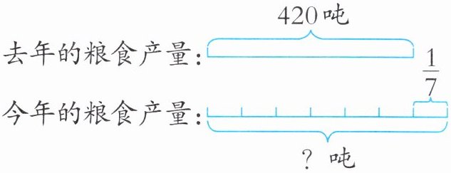 由线段图可知,今年的粮食产量是去年的(1+$\frac{1}{7}$),已知去年粮食产量为420吨。