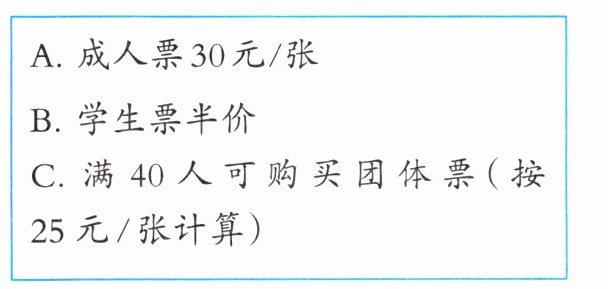 3. 某旅游团共有成人24人,学生17人,他们到某风景区观光旅游,门票价格如下。如果你是队长,你准备怎样购票最省钱?