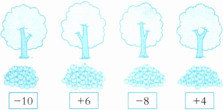 3. 同学们利用休息日帮助果农采摘苹果,从4棵苹果树上摘下的苹果分别放成4堆。果农王大伯估计每棵苹果树可产苹果100kg,同学们以此估计数为标准,超过的千克数记为正数,不足的千克数记为负数。