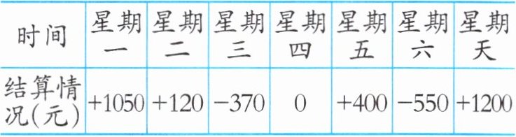 2. 下面是利民商店一周的营业款结算情况,根据表格填空。