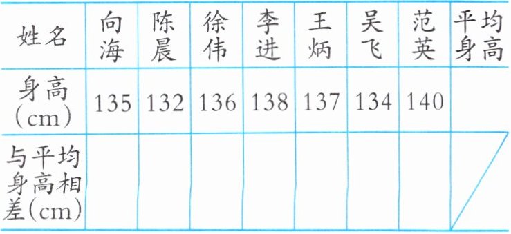 (2)如果把平均身高记为0cm,用正、负数表示出每位同学的身高。