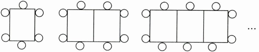 15. 一张长方形的桌子可坐 $ 6 $ 人,按如图所示的方式将桌子拼起来,则 $ n $ 张桌子可以坐
